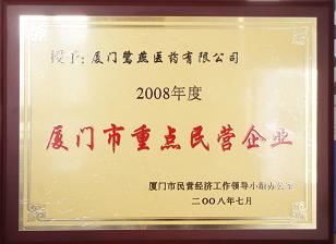近日,經市政府第35次常務會議研究確認, “2008年度廈門市重點民營企業”名單已正式公布,廈門鷺燕醫藥有限公司繼2006年之后再次獲此殊榮。 據相關負責人介紹,該評選活動每兩年舉行一次,主要針對在廈門注冊,在所從事行業處于領先地位,獲得相關行業部門、社會團體或同類型企業普遍認可的民營企業。 本次共評選出60家重點民營企業,鷺燕醫藥2007年度銷售收入近10億元,比上年增長36.9%。作為唯一的一家醫藥流通企業入選,彰顯了企業的行業地位。此次獲選肯定了公司的經營業績,同時也激勵著公司發揮優勢、克服困難,繼續保持企業健康、可持續發展能力,力爭在新的一年里再創佳績,實現集團股份制改造后經營質量有質的飛躍,為全社會的健康事業做出新的更大的貢獻。