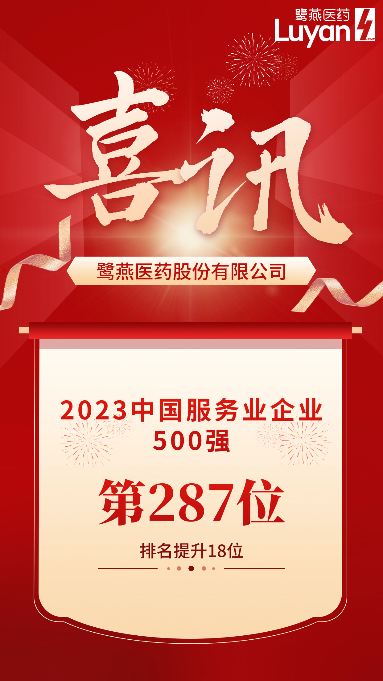 喜訊!鷺燕醫(yī)藥榮列2023中國服務(wù)業(yè)企業(yè)500強(qiáng)第287位