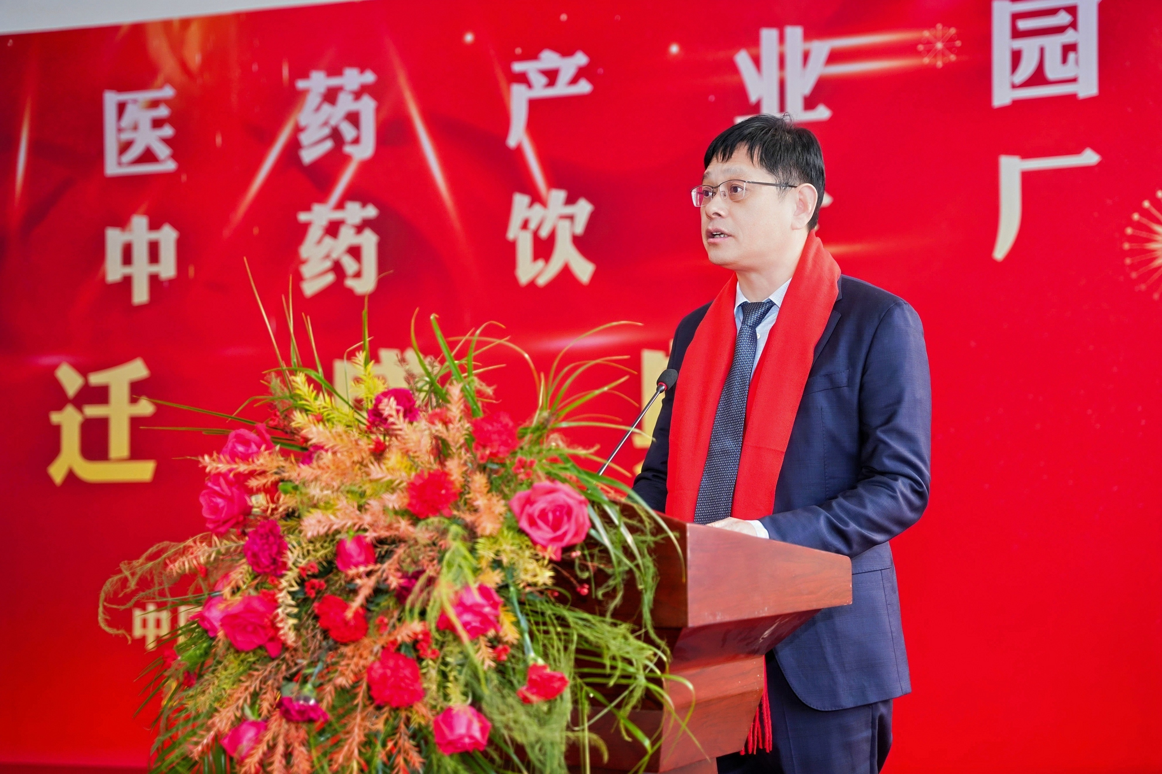 慶典會場紅綢高懸、花團錦簇,嘉賓席位井然有序。喜慶氛圍中,一場見證鷺燕中醫藥產業新紀元的儀式即將啟幕。