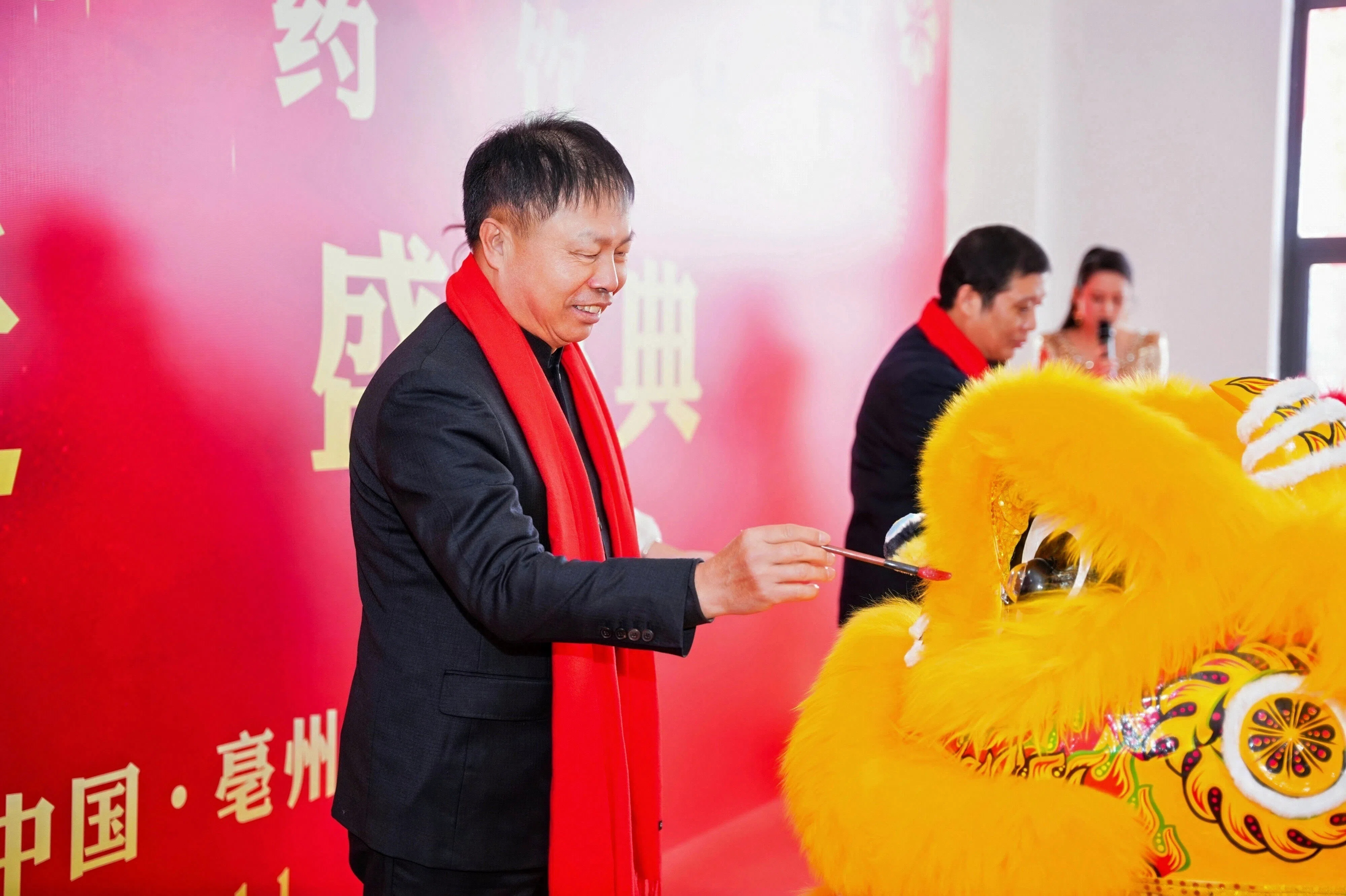 鑼鼓震天,醒獅騰躍!鷺燕集團董事長吳金祥為祥獅點睛,獅眼生輝、瑞氣滿堂。