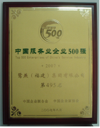 鷺燕集團近日捷報頻傳,在剛剛榮獲了“2007廈門企業100強”之后,再次躋身于“中國服務企業500強”之列。我集團已連續兩年獲此殊榮。
